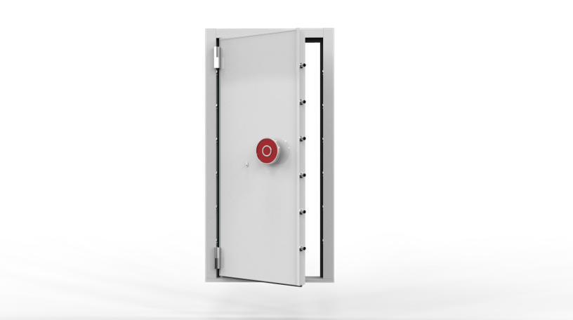 金庫門門扇配備有防水壓緊機構,門扇四周鑲有防水密封膠條,關緊門扇后,整樘金庫門在5m的水深,經過30min門體無滲水。